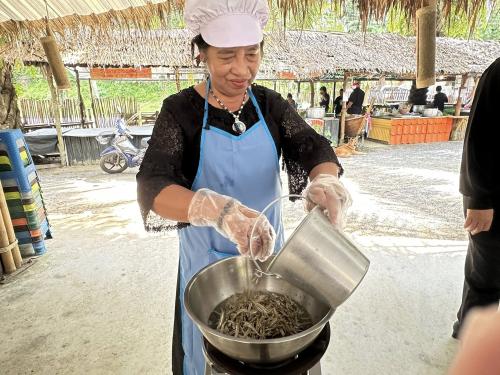 นางสาวพูลศรี นังเกิด พัฒนาการอำเภอคุระบุรี พร้อมด้วยเจ้าหน้าที่พัฒนาชุมชนและคณะกรรมการพัฒนาสตรีอำเภอคุระบุรีเข้าร่วมโครงการ “แปรรูปอาหารทะเล (ปลาฉิ้งฉ้าง) 3 เมนู 1 อำเภอ” ซึ่งจัดโดยคณะกรรมการพัฒนาสตรีจังหวัดพังงา ภายใต้การกำกับของสำนักงานพัฒนาชุมชนจังหวัดพังงา โดยมีวัตถุประสงค์เพื่อเสริมสร้างงานและอาชีพที่มั่นคงให้แก่สมาชิกสตรีในพื้นที่ ยกระดับคุณภาพมาตรฐานผลิตภัณฑ์ชุมชน และเพิ่มมูลค่าให้กับวัตถุดิบพื้นถิ่นอย่าง “ปลาฉิ้งฉ้าง” เพื่อต่อยอดสู่การเป็นผลิตภัณฑ์ OTOP ที่มีศักยภาพทางการตลาดสูง